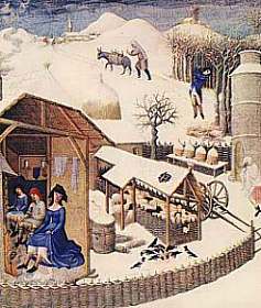 The Christmas season was a lengthy affair in the Middle Ages, beginning with the festival of St. Nicholas on 6th December and ending with Twelfth Night and the Feast of Epiphany (January 6th). In a time when people relied on good weather and good light to work, there was little to be done except keep warm and make merry. Many animals would have been slaughtered, since little winter fodder was available, and the harvest had been gathered, so food was usually plentiful.