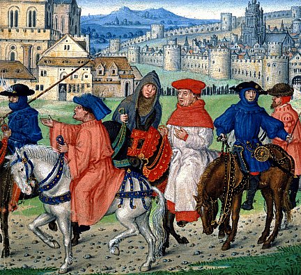 Other journeys bring people together. The Canterbury Tales are stories told by a group of people come together for a pilgrimage. Admittedly, they hadn’t got very far on their journey. They’d barely crossed London Bridge into Southwark. But pilgrimages were a common occurrence in real life, the package tours of the Middle Ages. In an age when people wouldn’t normally venture beyond the nearest market town, many thought nothing of setting off to Canterbury, to St David’s, to Santiago de Compostela, to Rome, even to Jerusalem, alone or in company, to see the world and seek for divine help, healing or forgiveness. Travel broadens the mind – unless it involves a flight like any other flight to a hotel like any other hotel by a beach like any other beach. Anonymous uniformity was not a problem in the Middle Ages, and if people returned from pilgrimage with nothing to show for it but a suntan, they must have been singularly unimaginative.